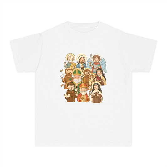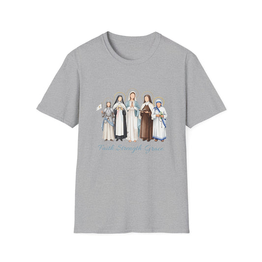 Saints Illustration T-Shirt — "Faith, Strength, Grace" Catholic Devotional Tee
