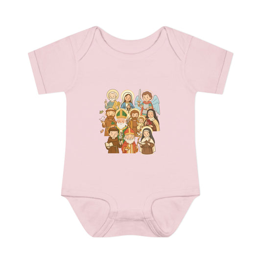 Cute Kid-Friendly Saints Catholic Baby Bodysuit - Fun Cartoon Saints - Baptism & Christening Gift
