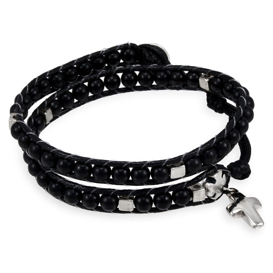 Wrap Around Rosary Bracelet, Ladder Design Wooden Beads Cross Charm 8-2503