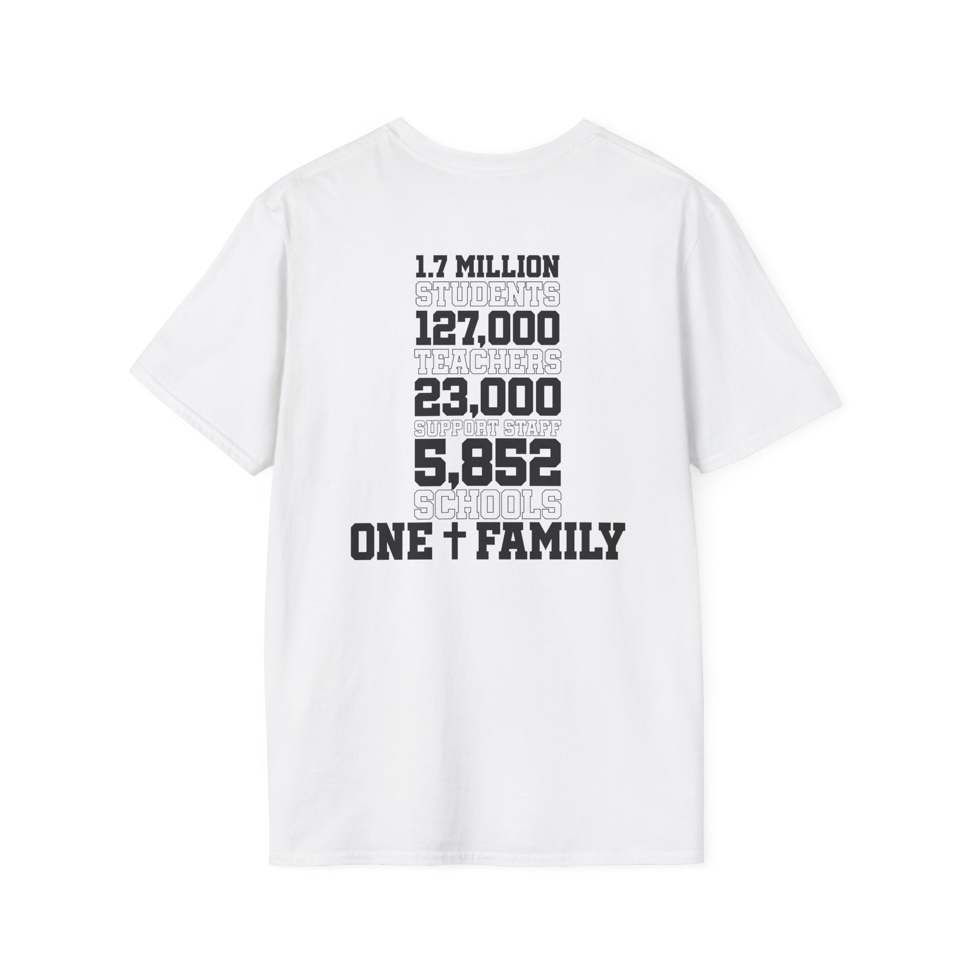 This comfortable tee highlights powerful statistics showcasing the excellence of Catholic schools – from high graduation rates and academic achievement to character formation rooted in faith. It's a conversation starter that celebrates the value of Catholic education while spreading awareness in your community.