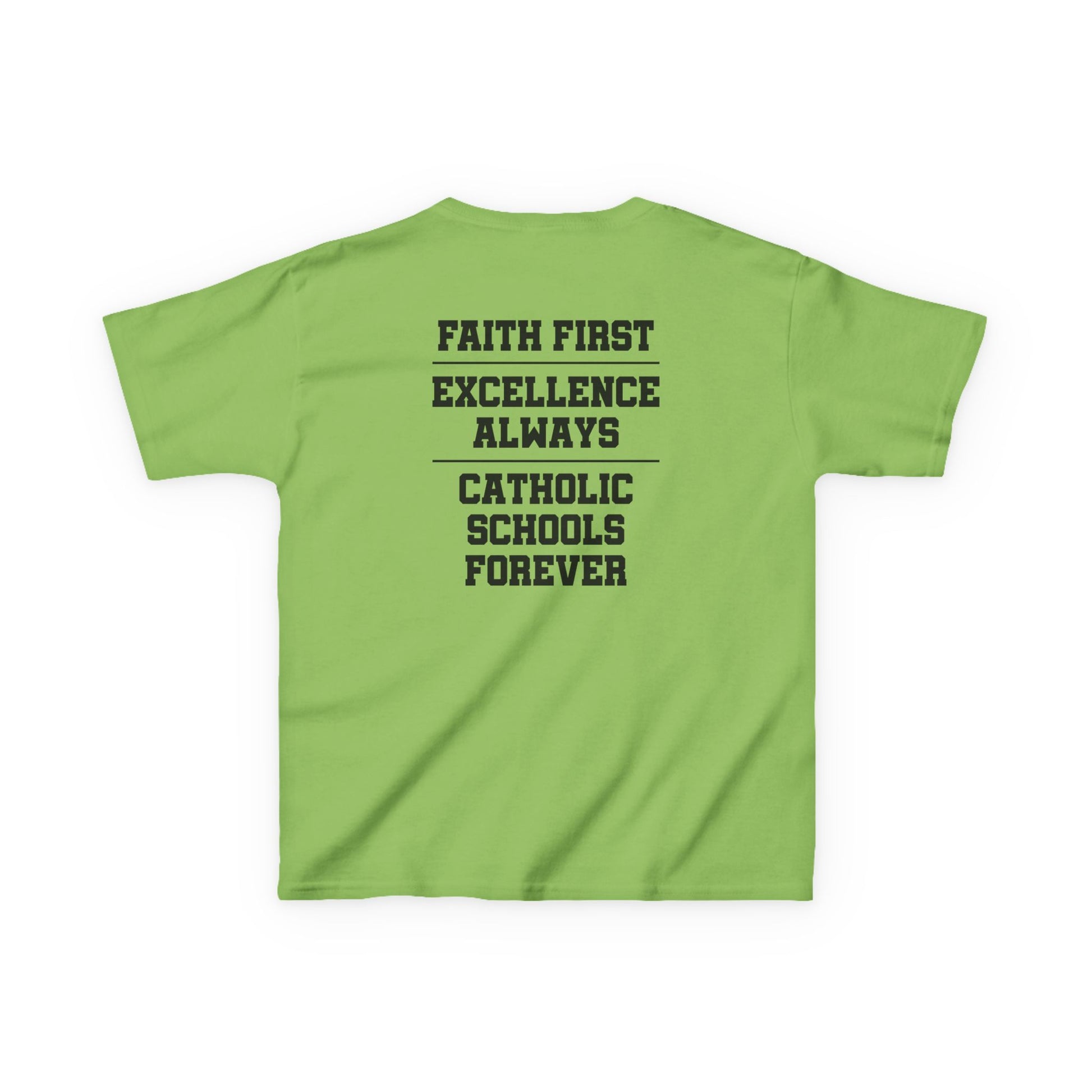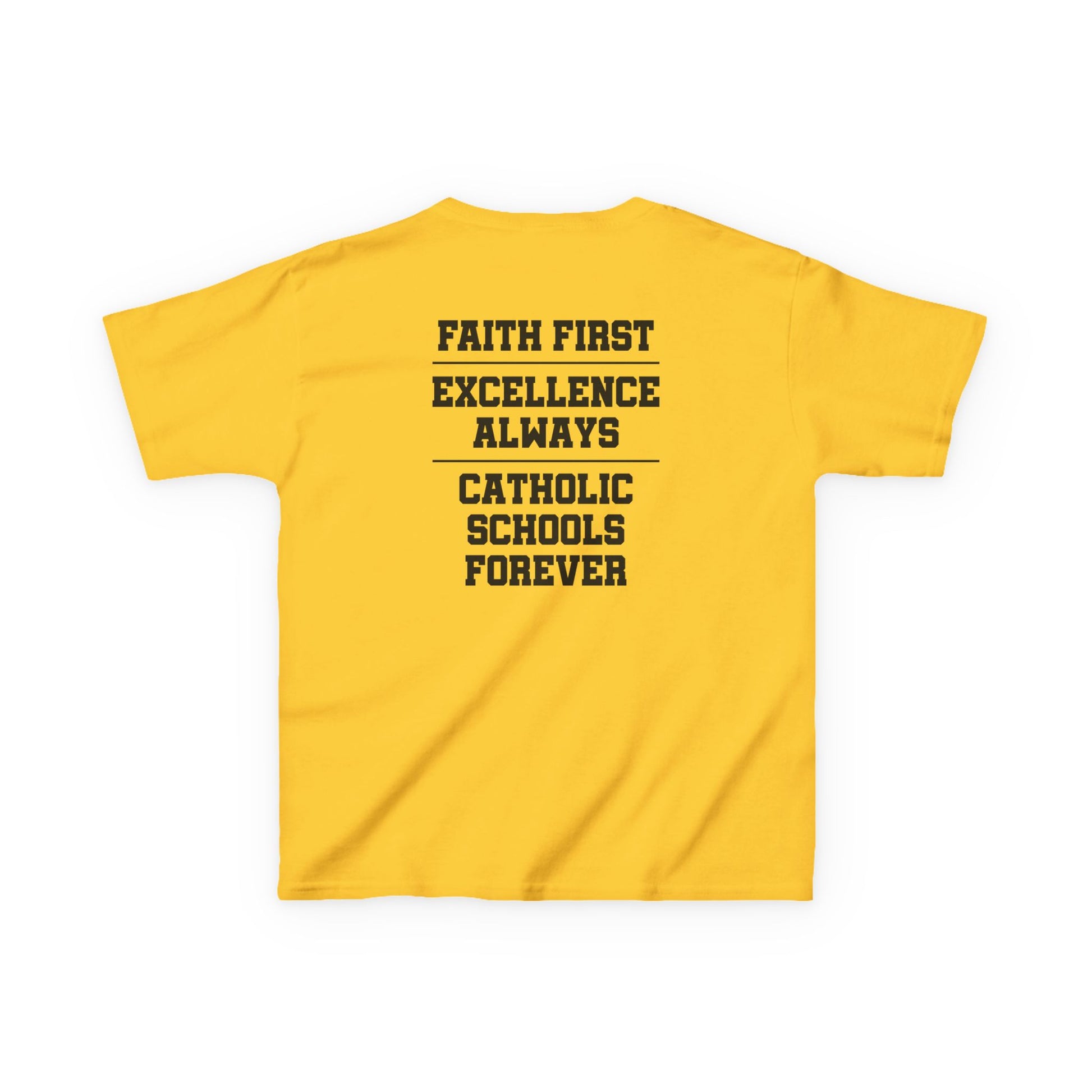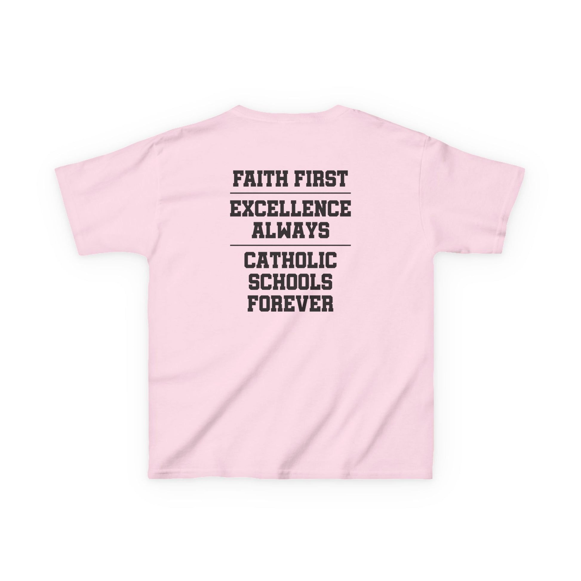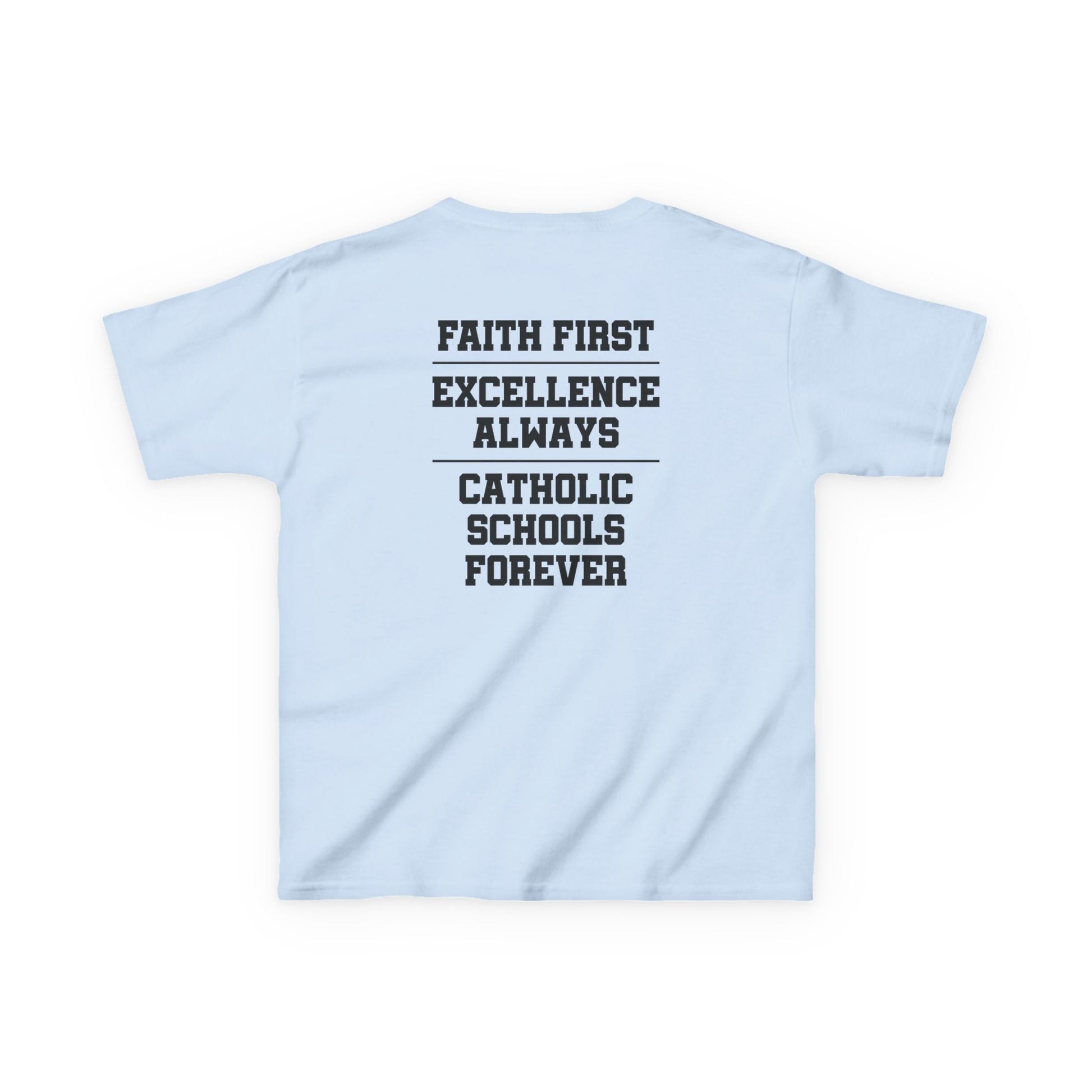 Youth sizes XS–XL. Order the one that says it all: Faith First, Excellence Always, Catholic Schools Forever.
