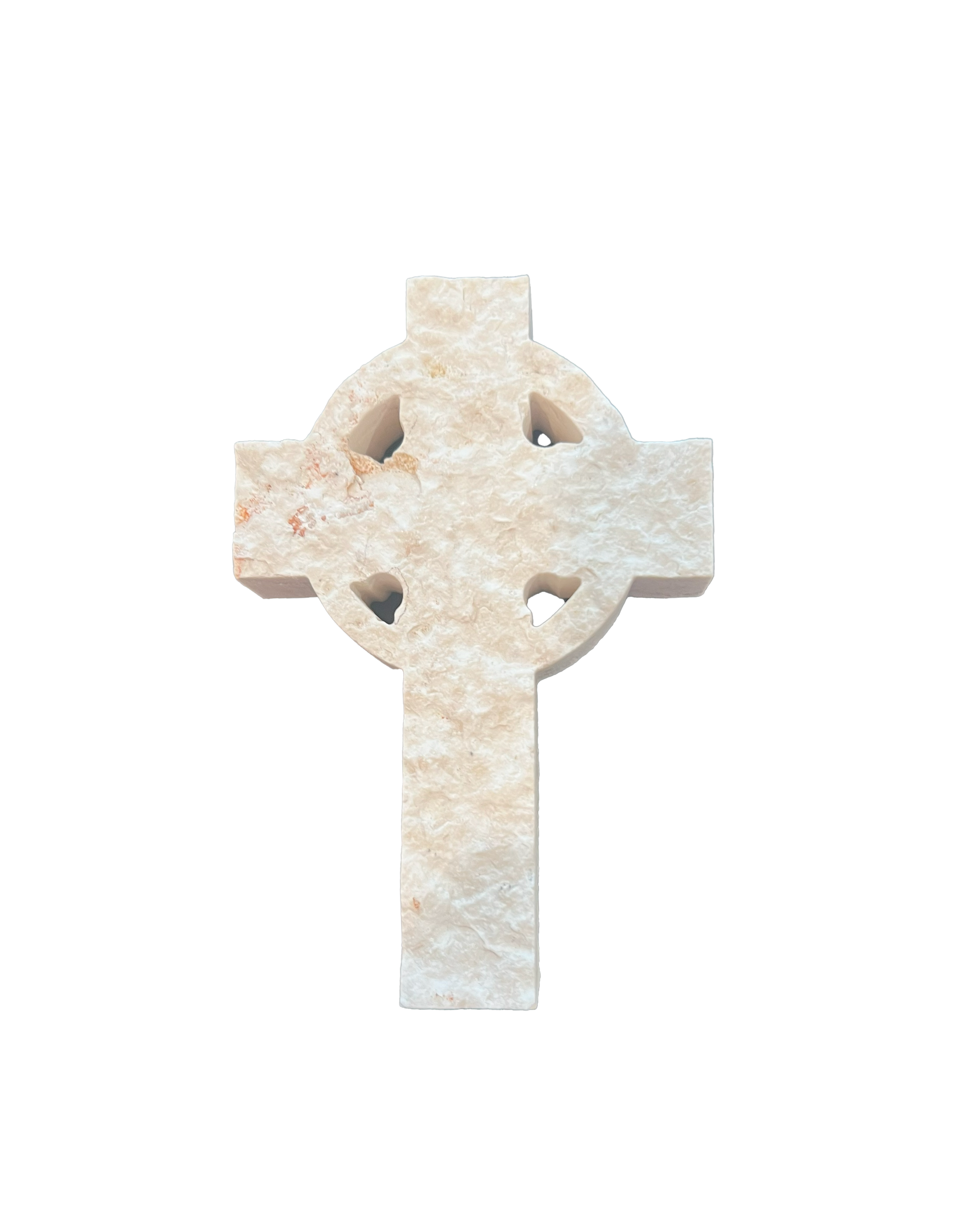Introducing our stunning Stone Celtic Cross, a symbol of profound spirituality and heritage meticulously crafted from high-quality stone. Personalize your space by choosing the stone that resonates with you—opt for the authenticity of Jerusalem Stone, available for purchase now, or secure your pre-order for the captivating Irish green stone set to arrive in March 2024. Measuring 2.9" wide and 4.25" high, each Celtic Cross is a timeless representation of the intersection between the divine and the earthly. Enhance your surroundings with the intricate design and cultural significance embodied in our finely detailed stone Celtic Cross.