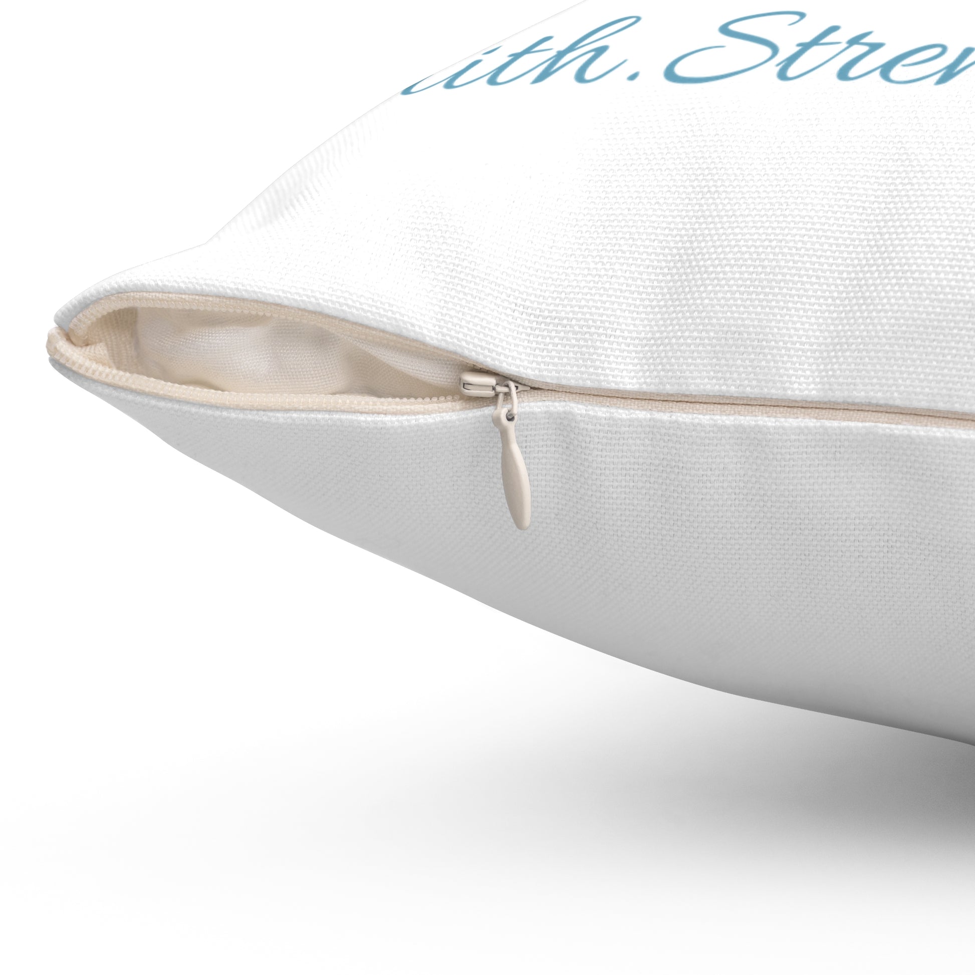 This plush square pillow features the serene women saints illustration with the gentle words “Faith • Strength • Grace” printed vibrantly on one side, while the back stays crisp white for a clean, classic look. Perfect for the couch, reading nook, prayer corner, or bed. The soft spun-polyester cover feels cozy against your skin, and the recycled polyester insert keeps it fluffy and full.