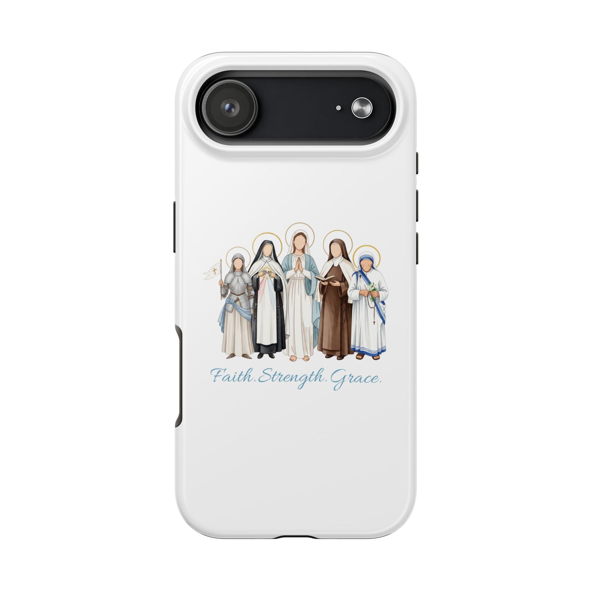 Faith Strength Grace Catholic Tough Phone Case - Women Saints iPhone & Samsung Case