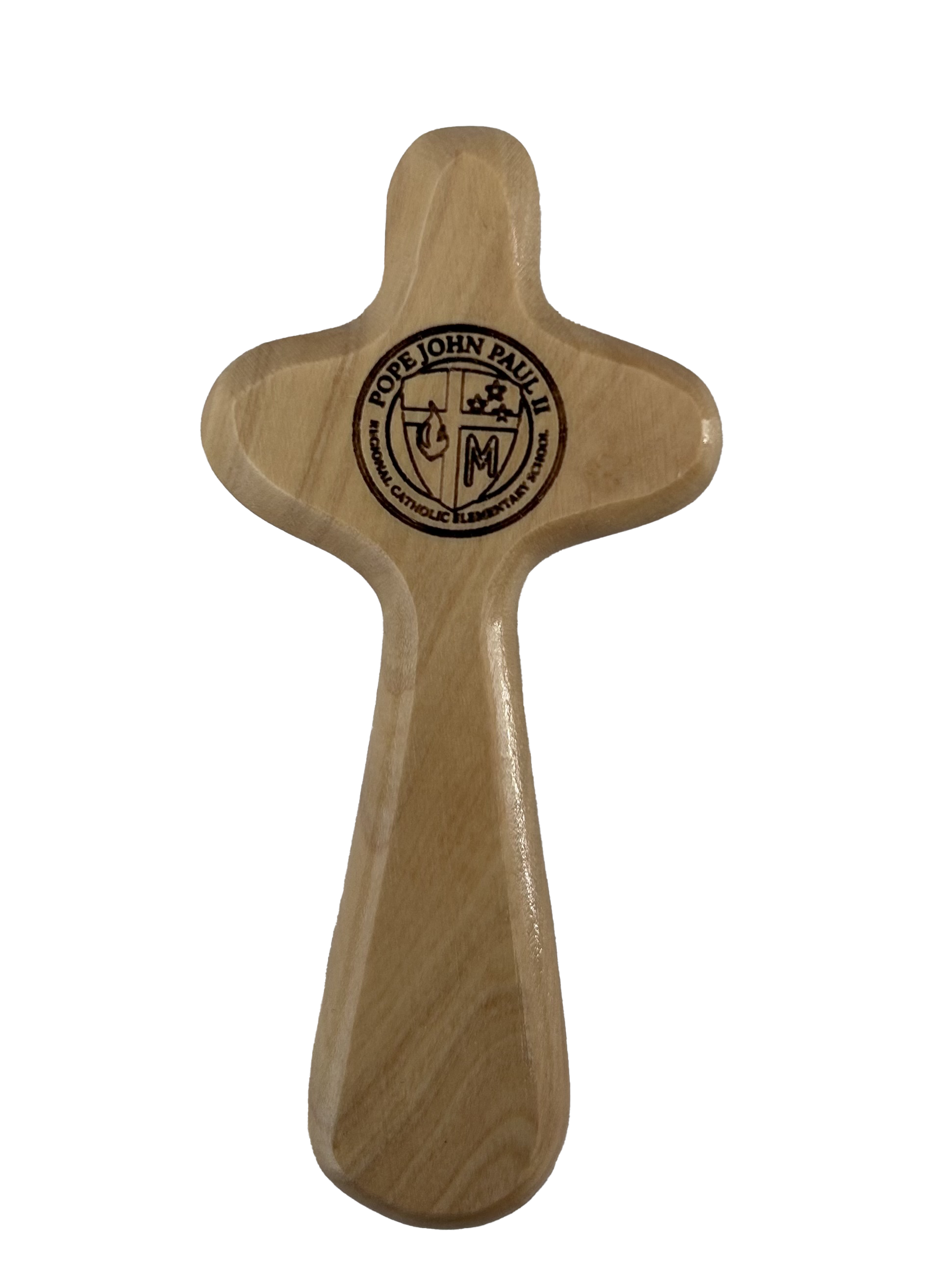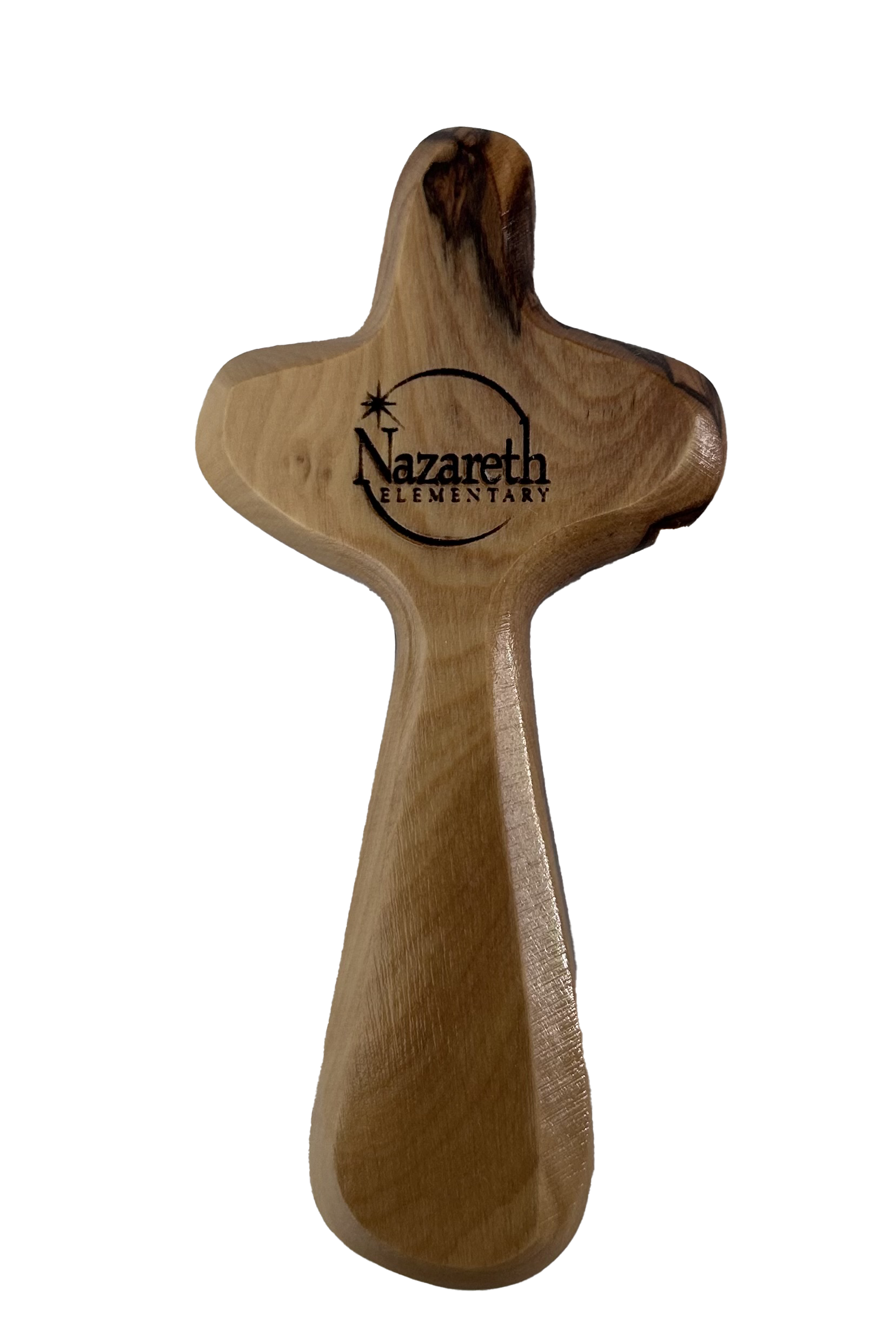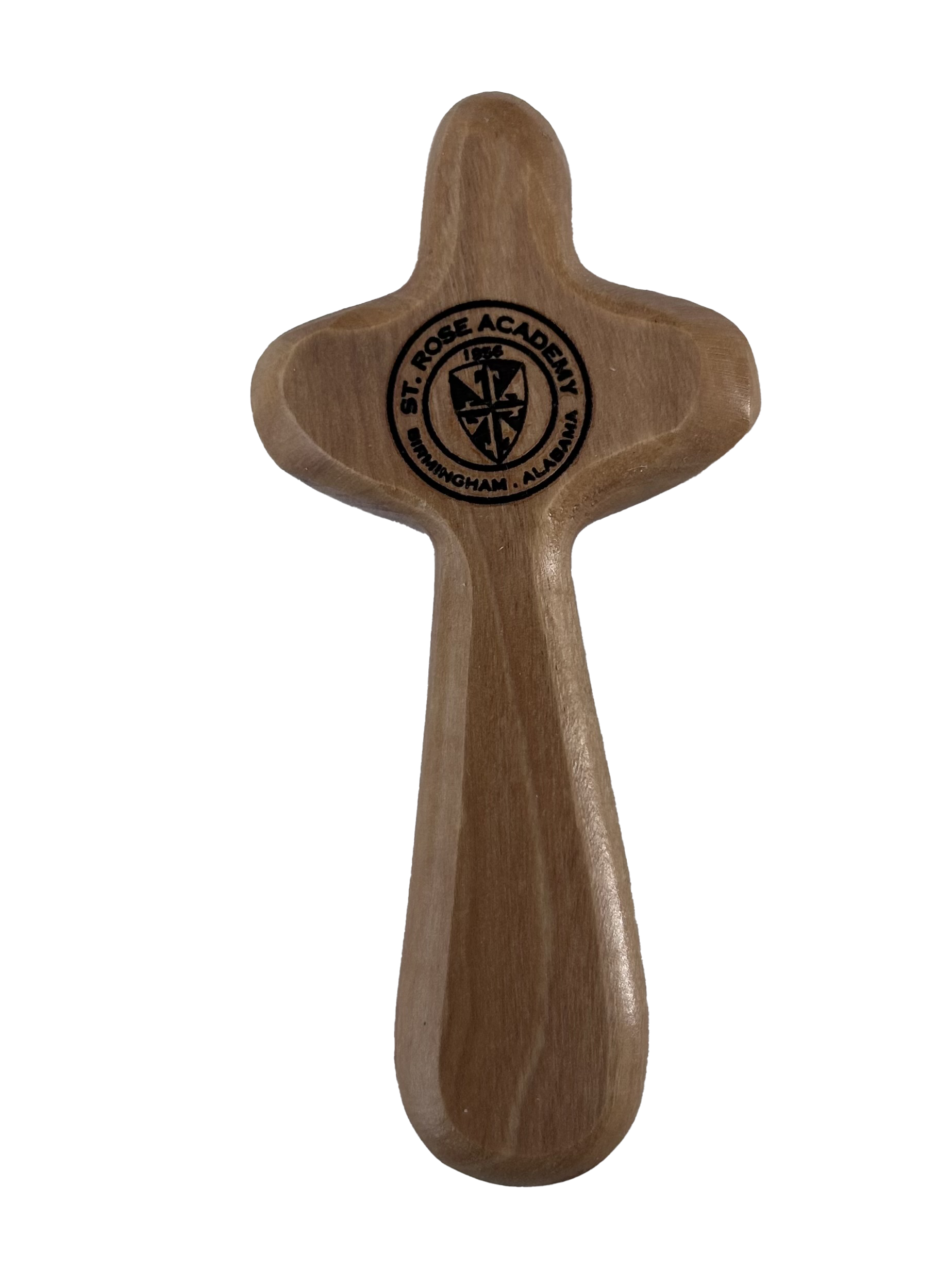 Our popular pocket holding cross is designed to fit comfortably in your pocket or the palm of your hand and personalized with your school logo