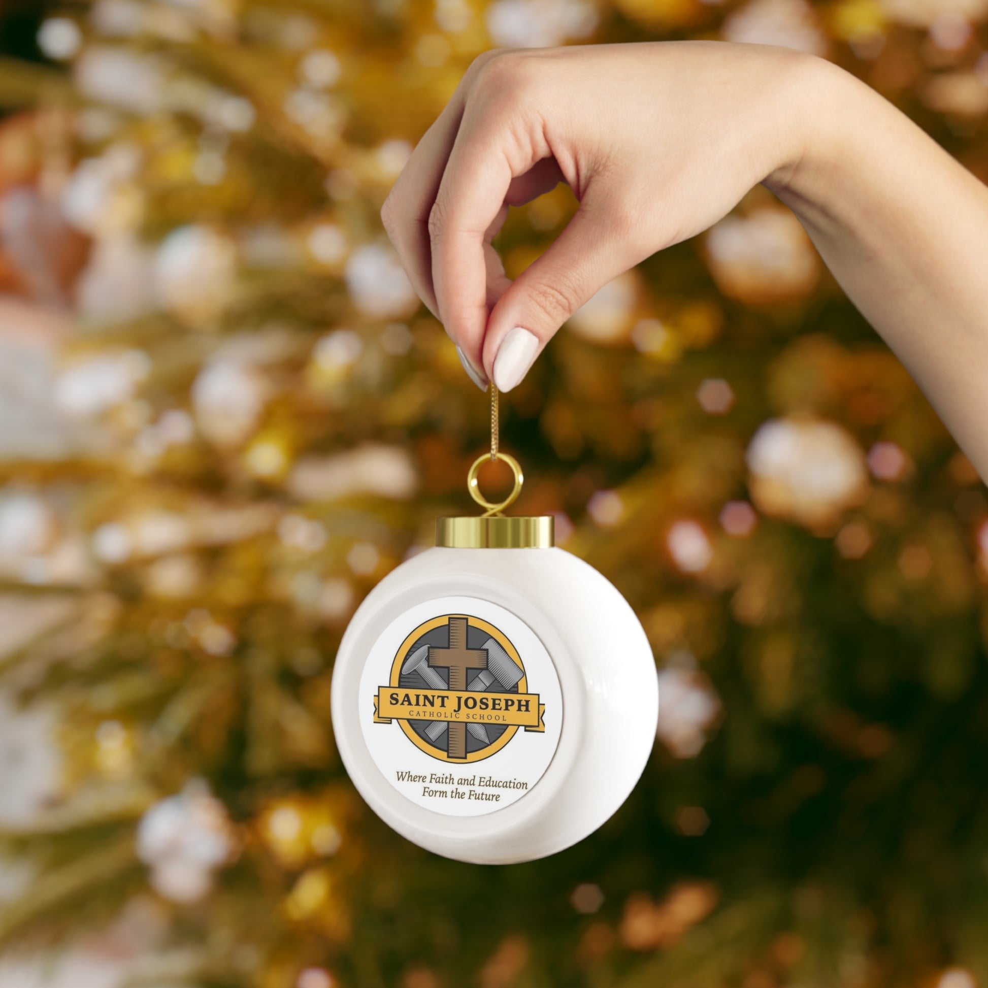 This ceramic ornament with a glossy finish features the logo of St Joseph Catholic School - Monroeville, OH, making it a perfect addition to any Christmas tree. Each ornament comes with a hanging hole and a gold ribbon for easy display. The vintage style and custom design on aluminum insert add a special touch. Ideal for students, parents, and alumni of St Joseph Catholic School, this ornament is a great way to show school pride during the holiday season.