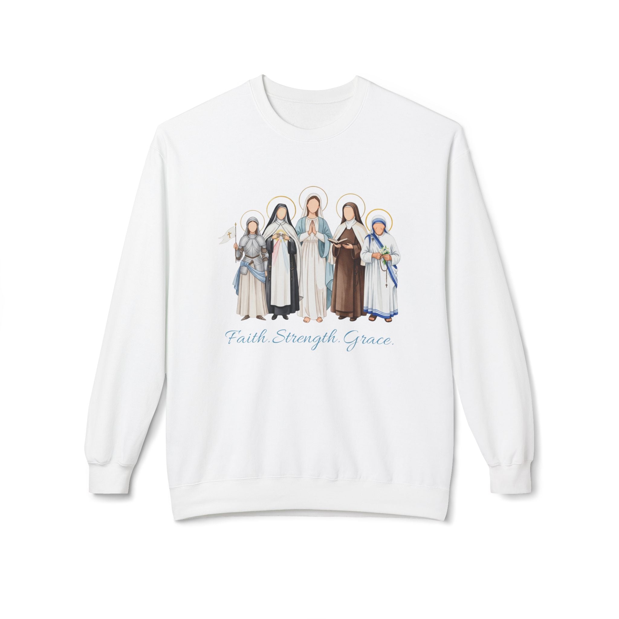 Faith Strength Grace Catholic Crewneck Sweatshirt - Women Saints Cozy Fleece Pullover