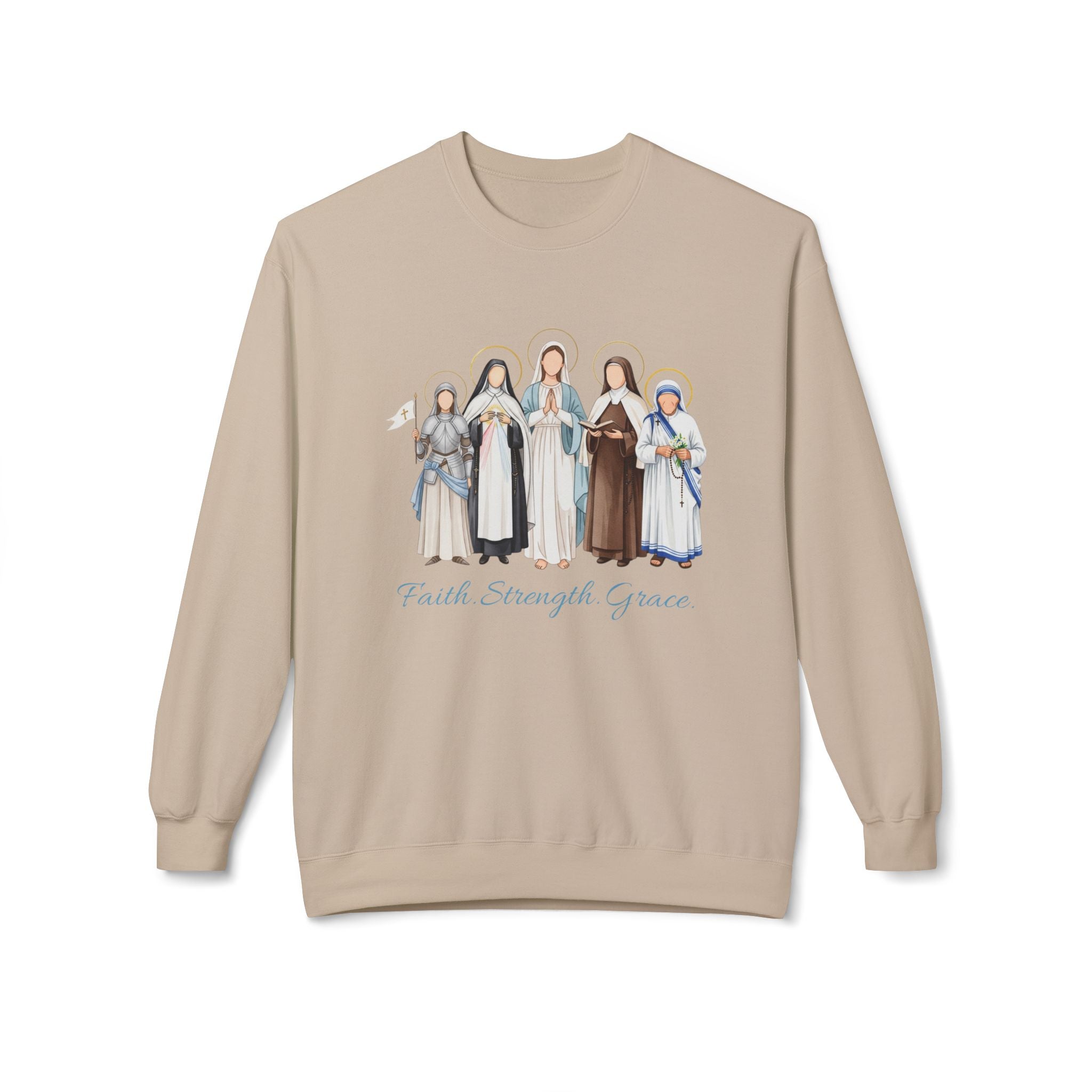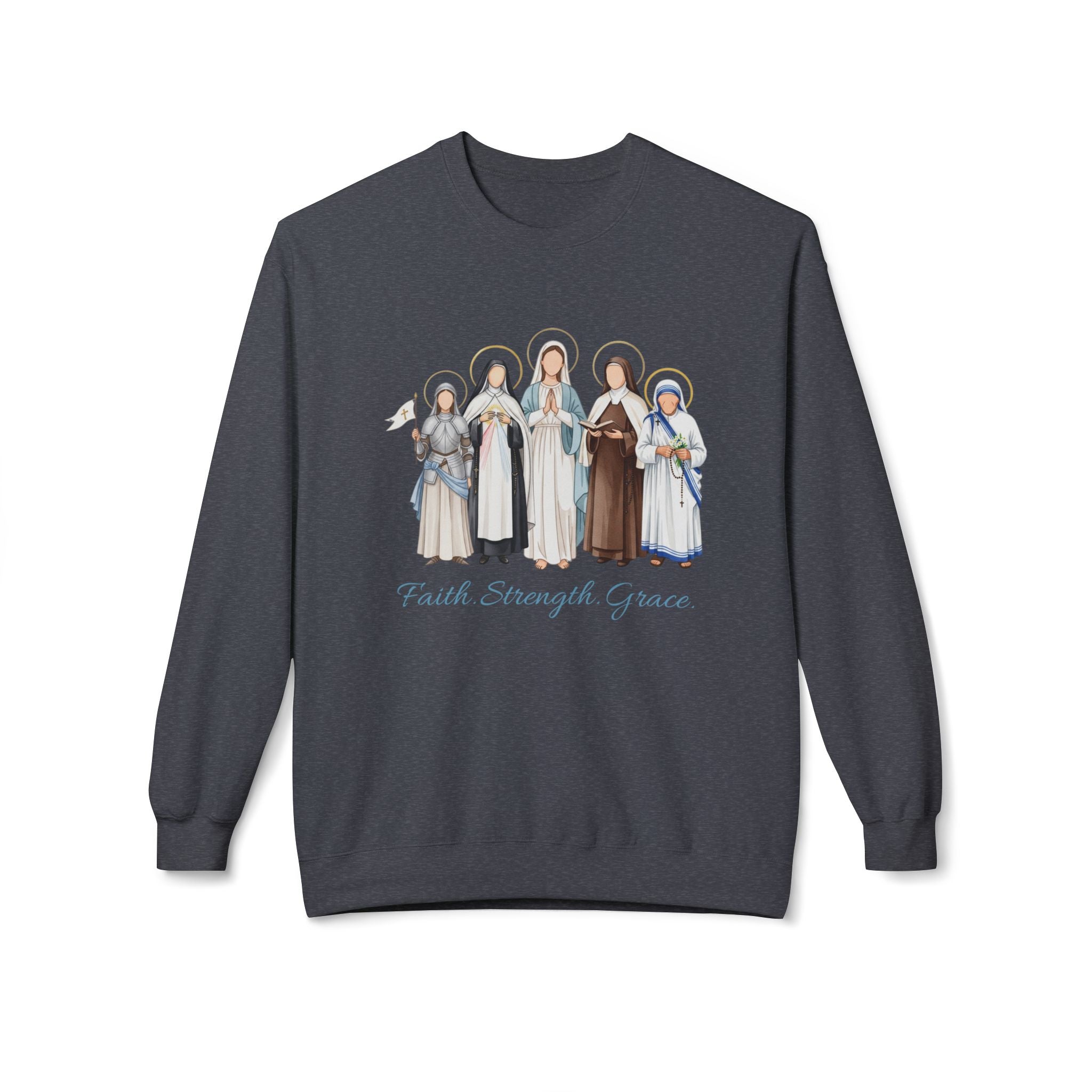Faith Strength Grace Catholic Crewneck Sweatshirt - Women Saints Cozy Fleece Pullover