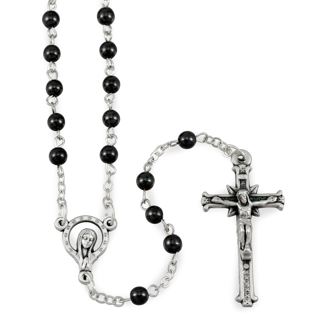 Rosary Hematite Round Beads Madonna