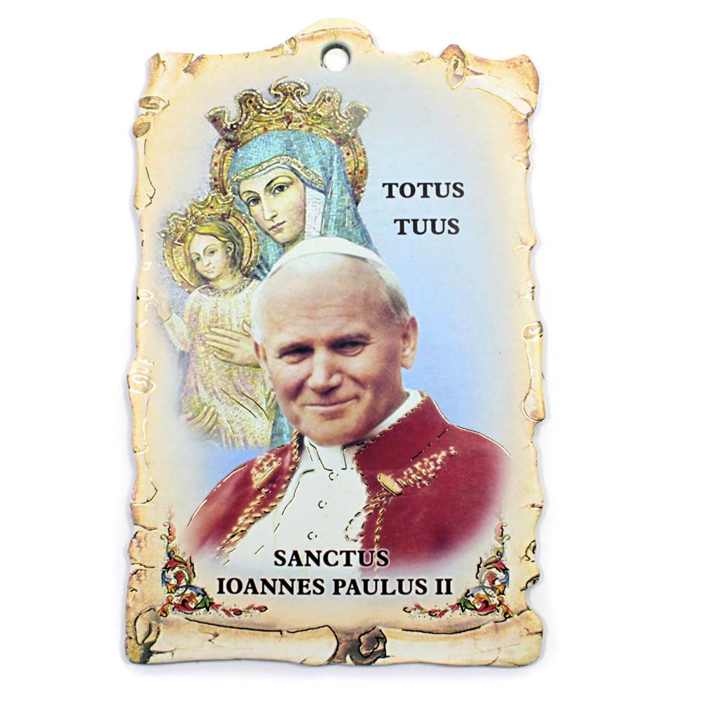 Saint John Paul II color press board plaque. Can be hung on wall. Made in Italy
