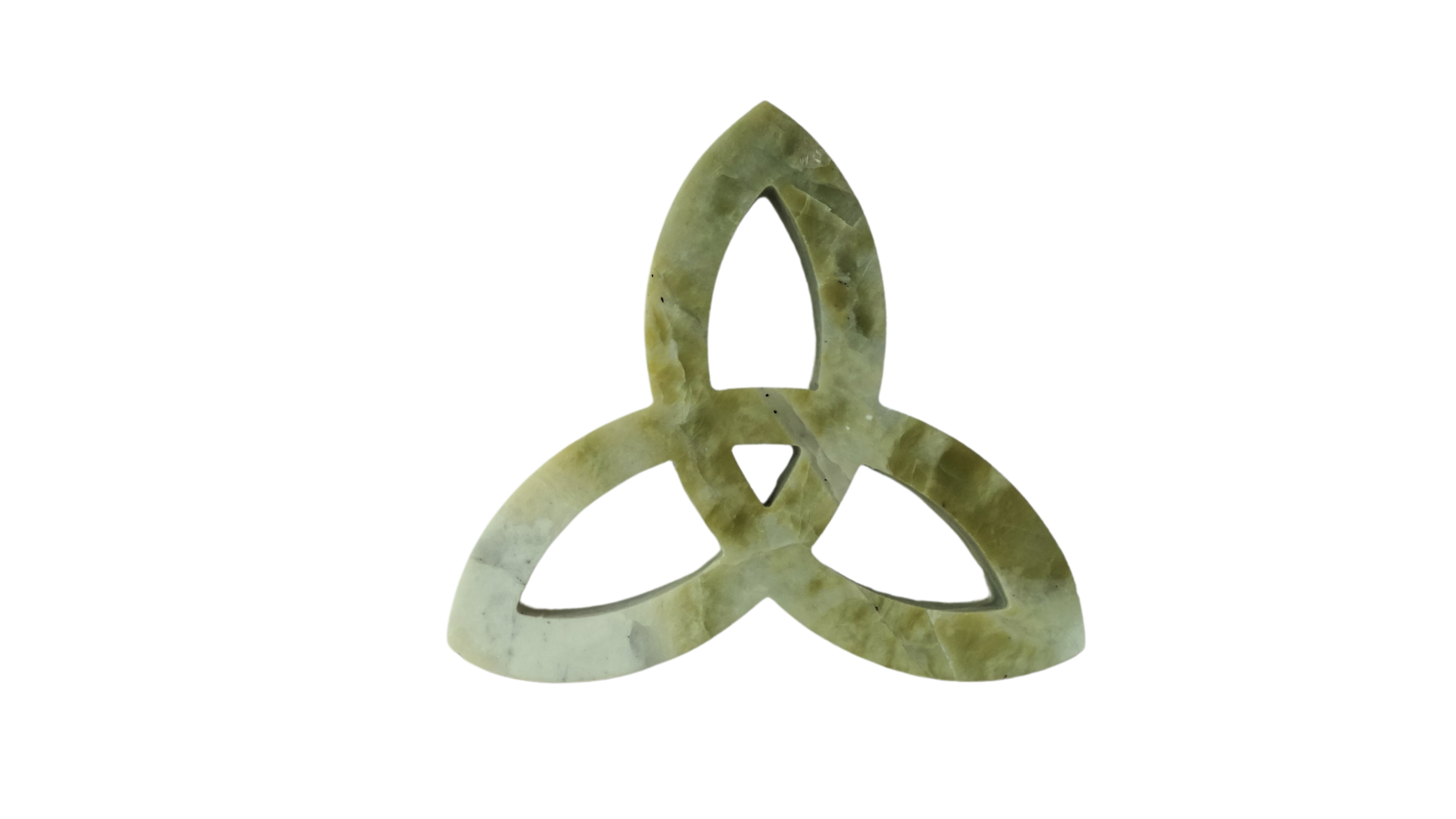 Discover the profound beauty of our Stone Celtic Trinity, a masterpiece that bridges ancient spirituality with modern elegance. This carefully crafted symbol transcends time, representing unity, eternity, and the sacred interconnection of all things—whether you're drawn to its pagan roots celebrating the triple aspects of divinity or its Christian significance embodying the Holy Trinity. Choose from authentic Jerusalem Stone or enchanting Irish green stone, each selection infusing your space with its own unique energy and cultural resonance. At a perfect 3" x 3", this intricately detailed piece serves as both a powerful spiritual anchor and a stunning decorative accent. Embrace a symbol that speaks to protection, spiritual depth, and timeless meaning—a versatile emblem that honors centuries of tradition while enriching your personal sanctuary.
