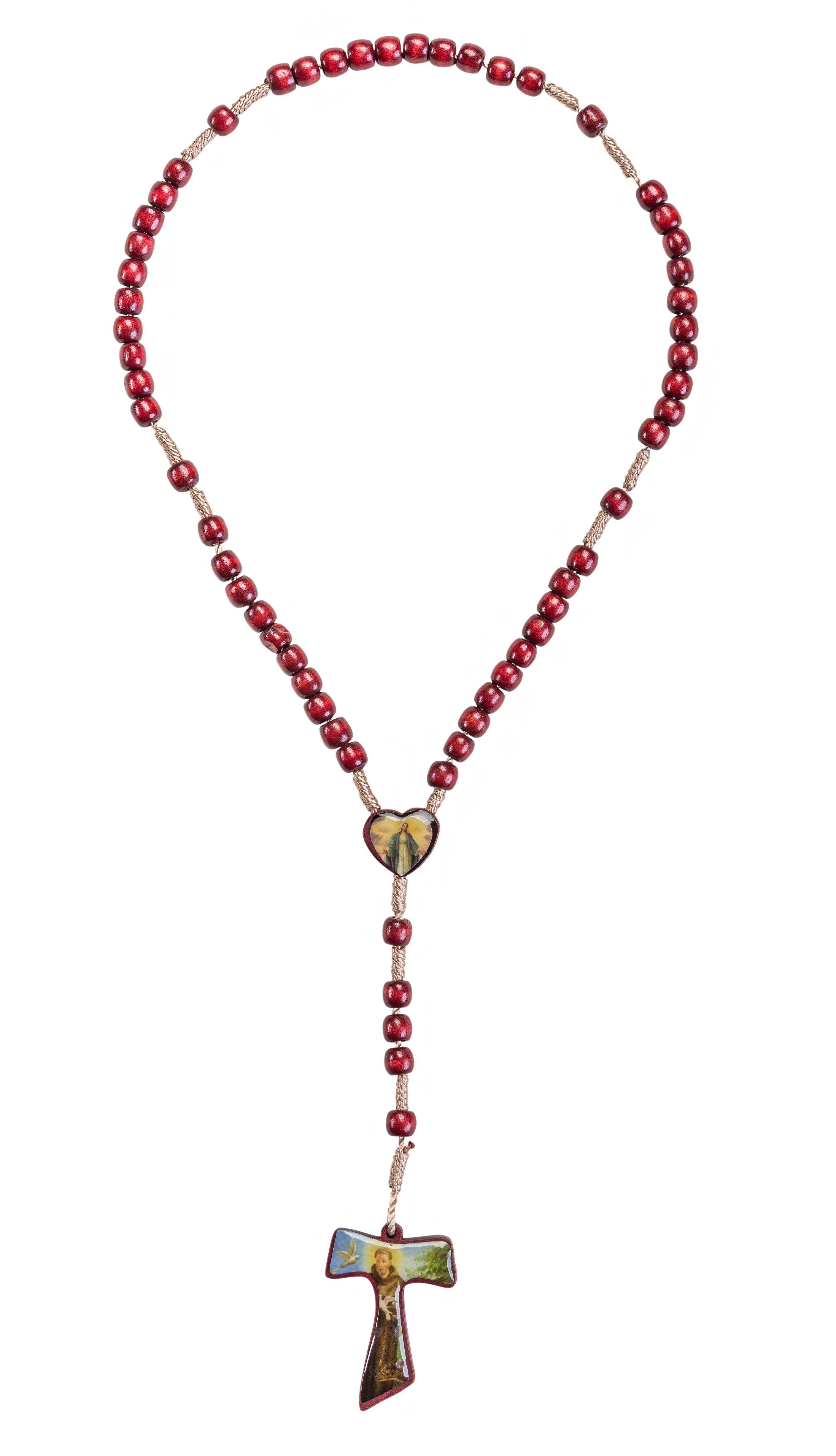 Round Wood Beaded Rosary on Cord, Divine Mercey Heart Center, Crucifix St Francis