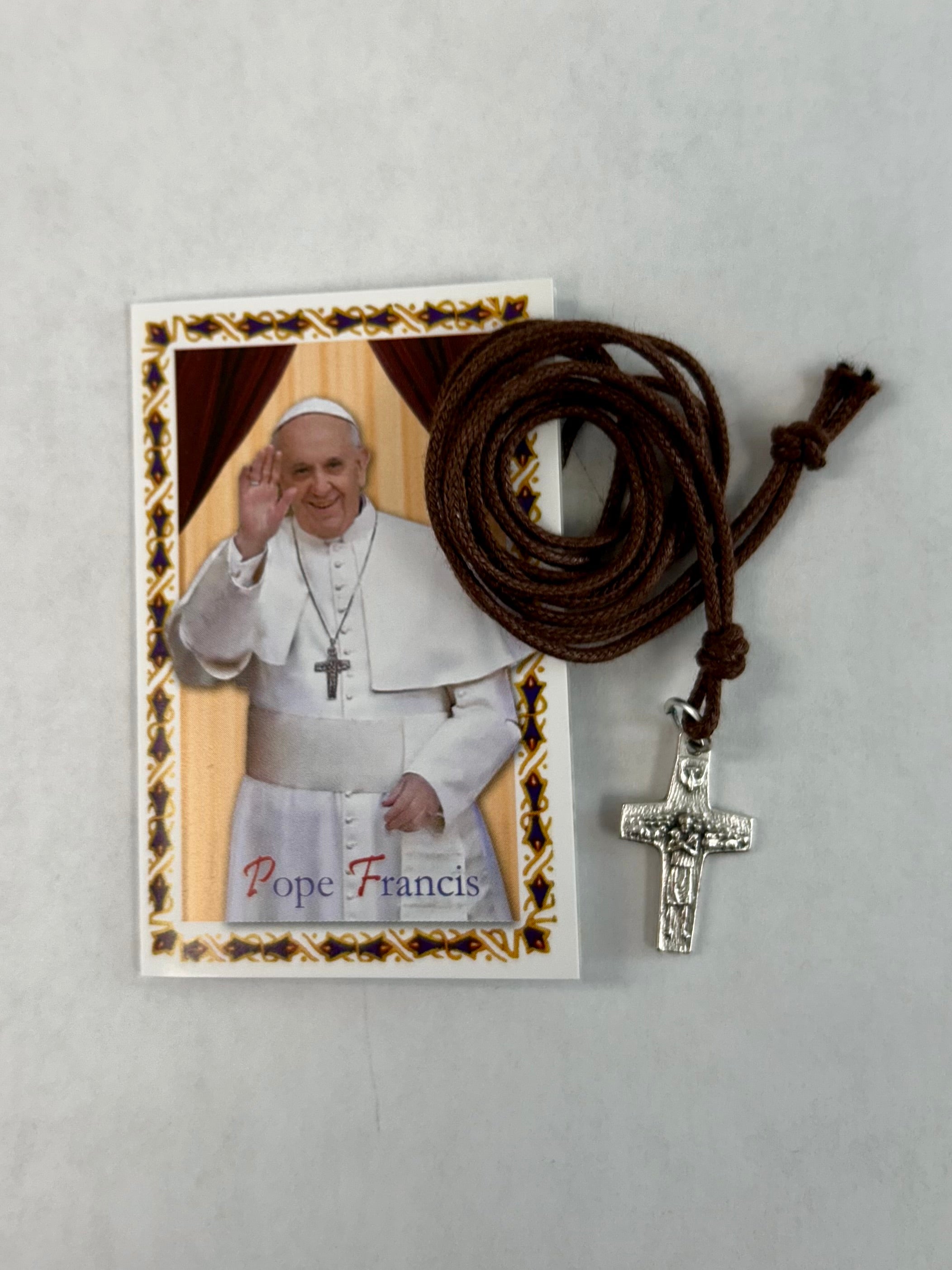 Pope Francis Cross Pendant 3/4 inch with brown cord.